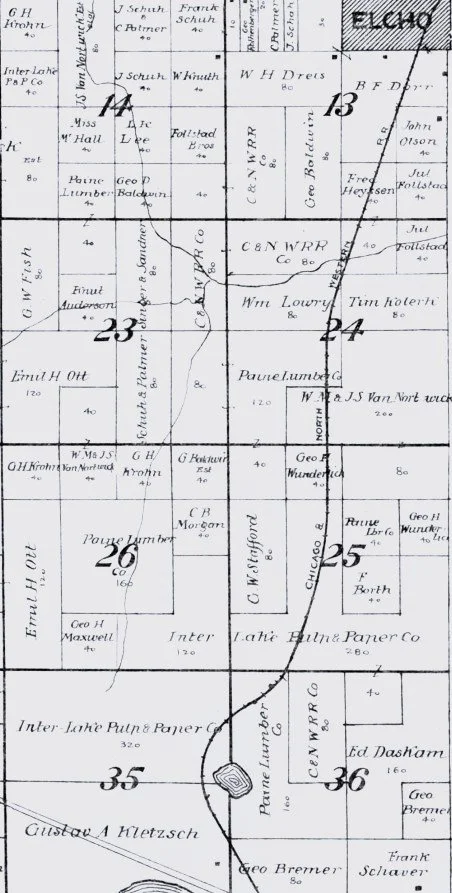 1913 Map of CNW track South of Elcho